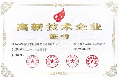 高新技术企业证书