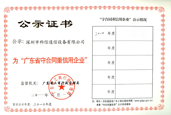 2011年度广东省诚信示范企业