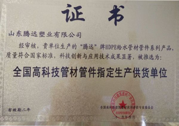 全国高科技管材管件指定生产供货单位