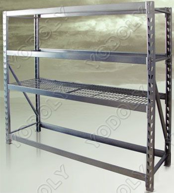 详细摘要: 立柱采用C型型材,立桂片为焊接式,横梁为阶梯梁,双片焊接式,每层放钢丝网片,每层以50.8mm节距上下调节。承载